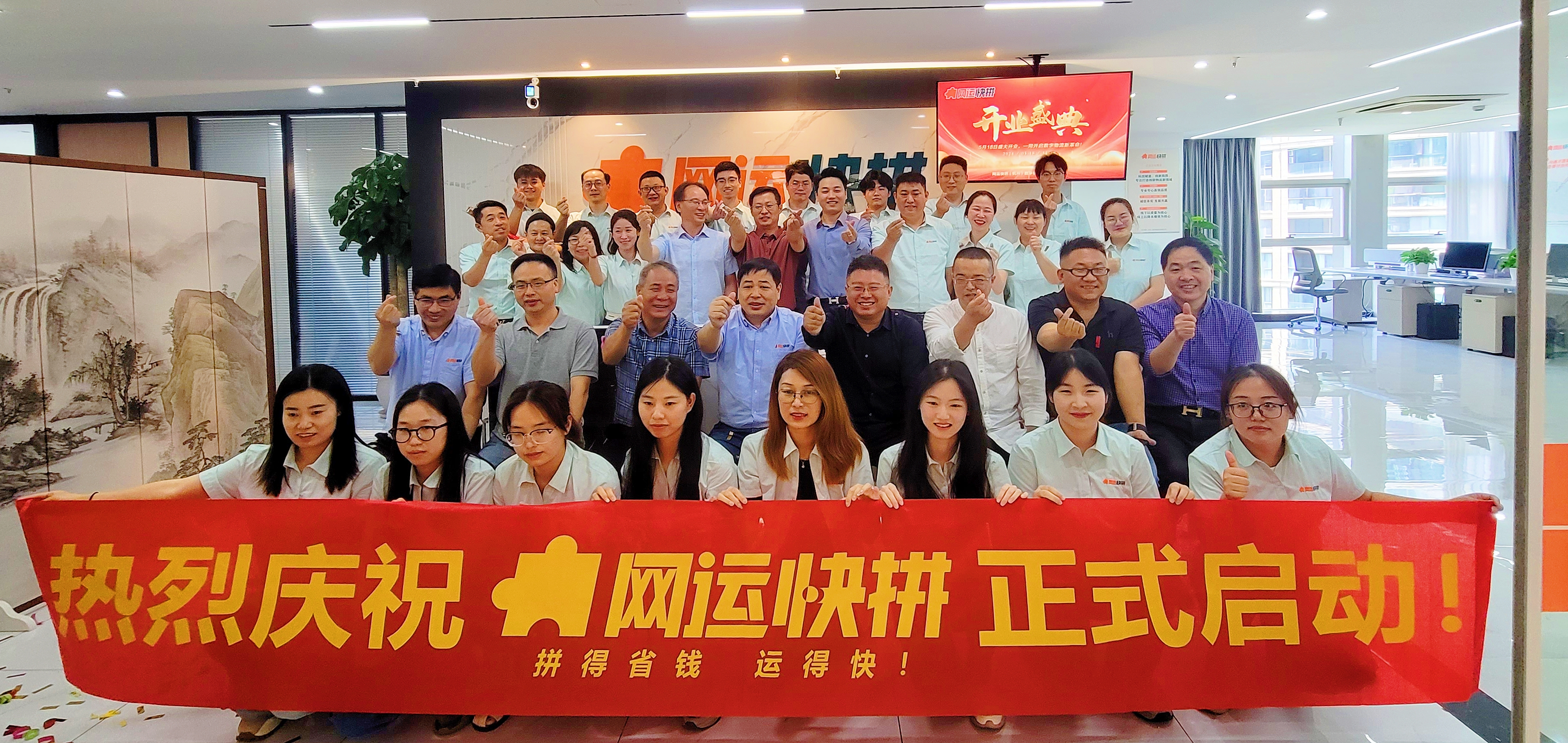 5月18日11:18分,网运快拼盛大开业,参加典礼有(排名不分先后):公司总裁丁敬保、公司合伙人团队、公司高管,宇田软件、法佐法佑法务服务平台、宁录投资、咔淘投资和敏思达公司等高管,浙江交通职业技术学院教授,外省代表,承运供应商代表和全体员工共襄盛举,共同庆祝这一重要里程碑。